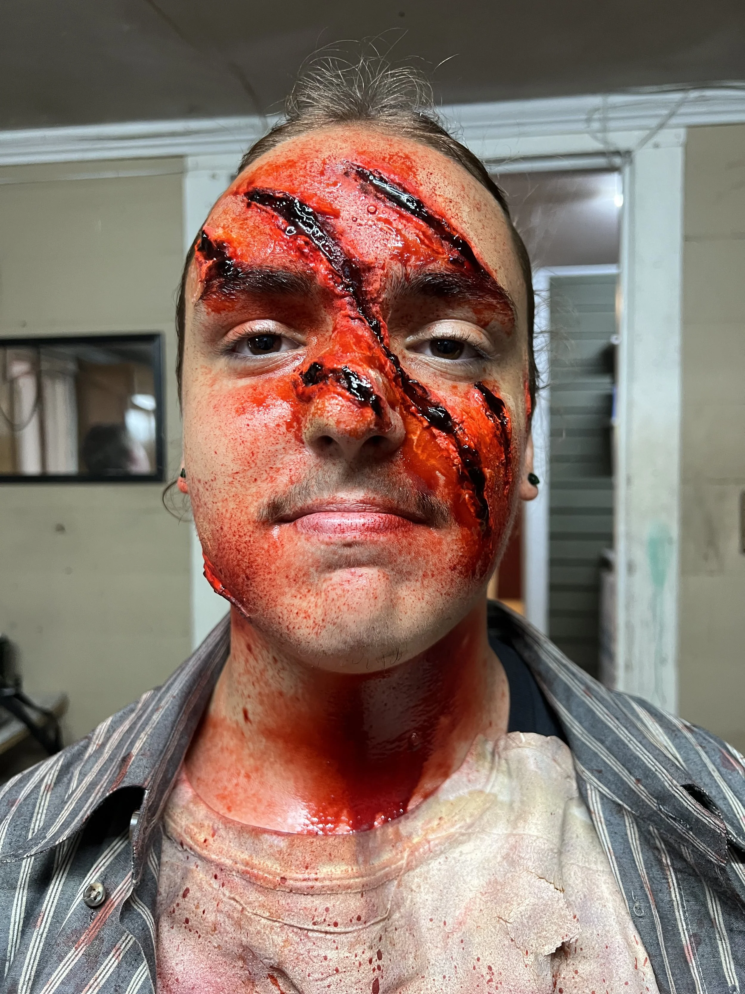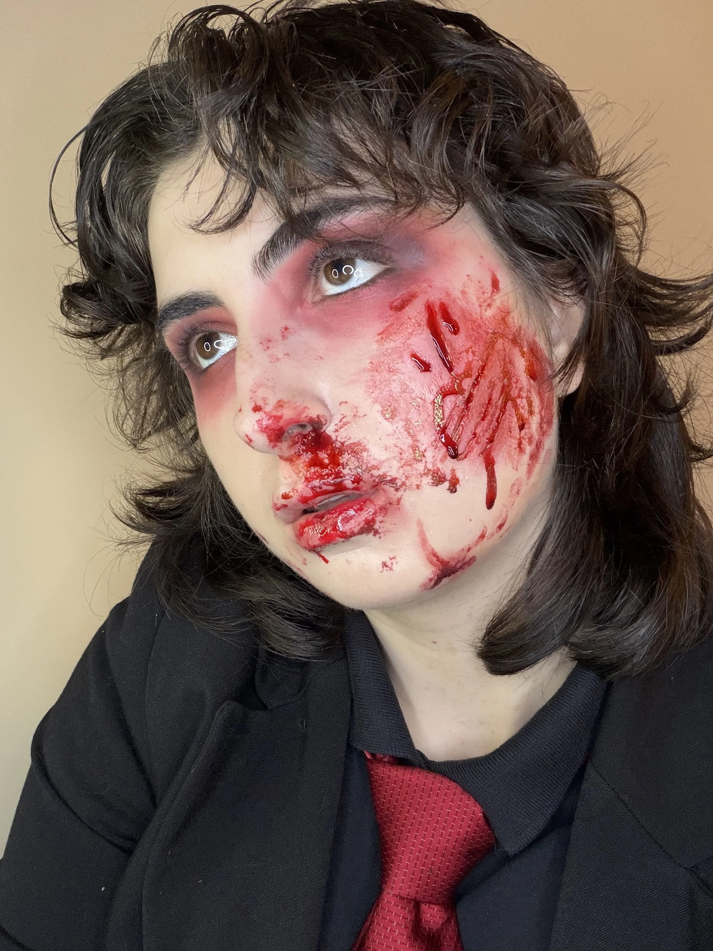 Utilizing a variety of her skills in practical effects, prosthetics, and makeup, Hayley helps to bring stories to life. She strives to create a blend of drama and realism in her work, pushing the boundaries of what can be achieved in student and independent film. She is particularly familiar with fake blood and bleeding wound prosthetics, using these effects to shock audiences and bring authenticity to performances.